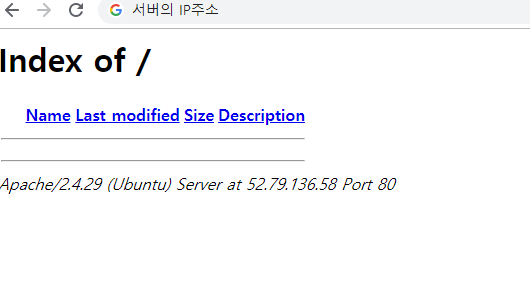 브라우저에 서버IP주소를 입력합니다. 그렇다면 아래와 같은 화면이 나올 것입니다.